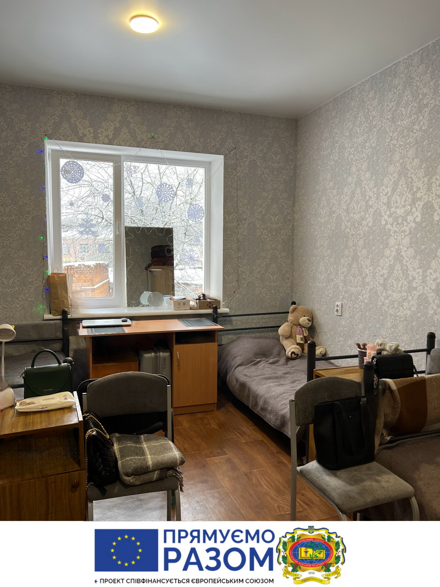 The issue of accommodation of the educational process participants is crucial, as a significant number of our students and staff are internally displaced persons, so the EU project has also provided for the renovation of some of the rooms in the hostel No. 1.