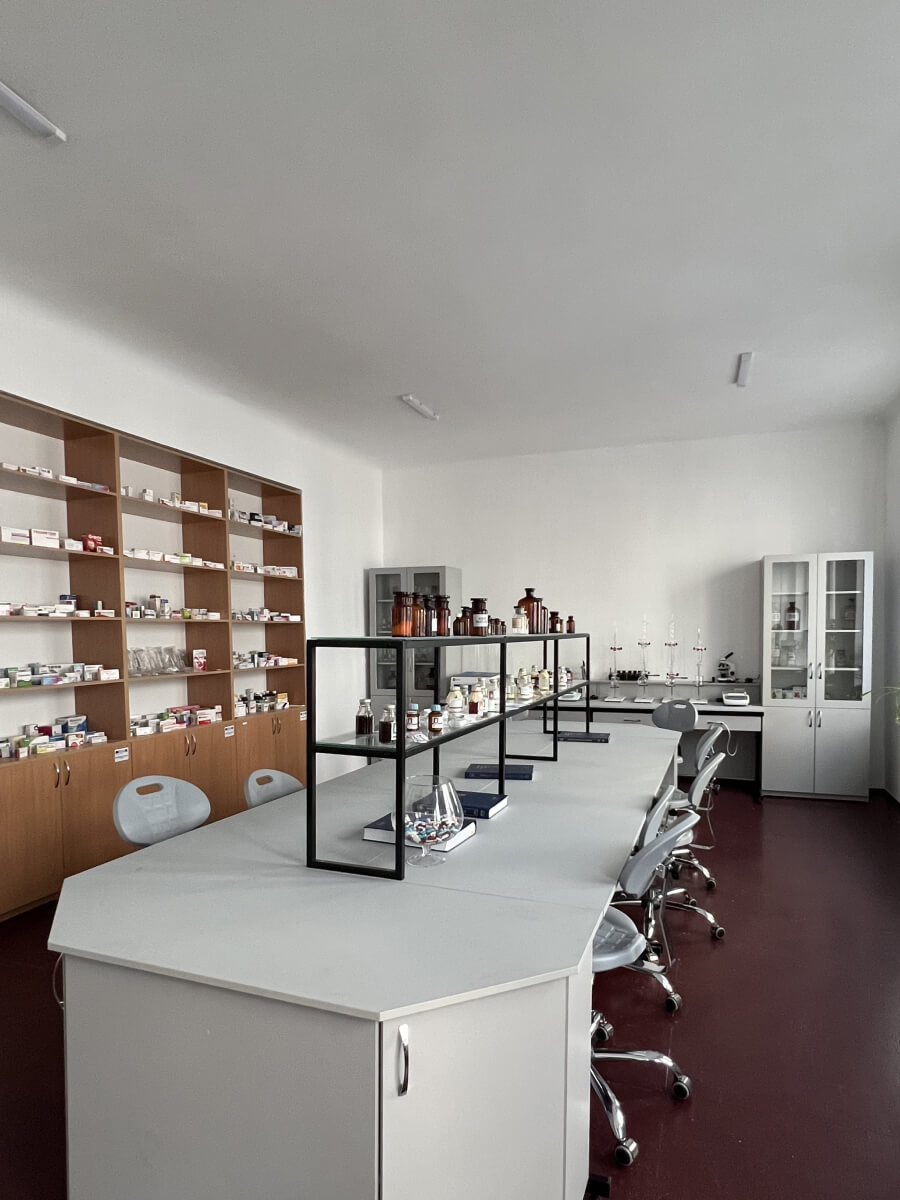 Завдяки підтримці КП «Луганська обласна «Фармація» на території університету було зведено спеціалізовану будівлю — «Аптеку-студію», що поєднувала функціонуючу аптеку з навчальними приміщеннями кафедри. На другому поверсі розміщувалися комп’ютерний клас, науково-дослідна лабораторія та кабінети викладачів.